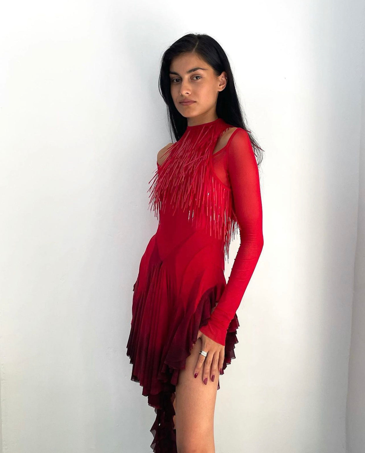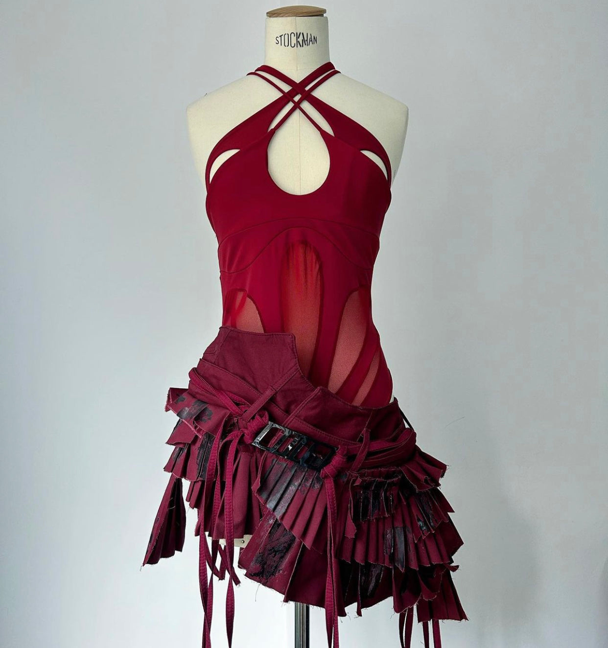 Es verkörpert unsere Markenwerte experimenteller Prêt-à-porter, die selektive Sichtbarkeit des Körpers und sorgfältige Rahmung durch Lagen, Ausschnitte und Transparenz erforschen. Der Twirl fängt das Thema des schnellen Anziehens ein und bietet eine Abwandlung einer klassischen Prêt-à-porter-Form.